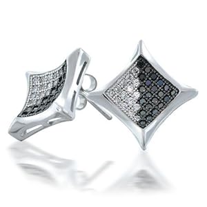 Bling Jewelry Black White CZ Micro Pave Kite Mens Stud Earrings 10mm